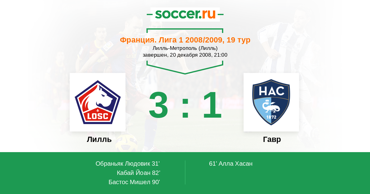 90' (3:1) Бастос Мишел (Обраньяк Людовик)