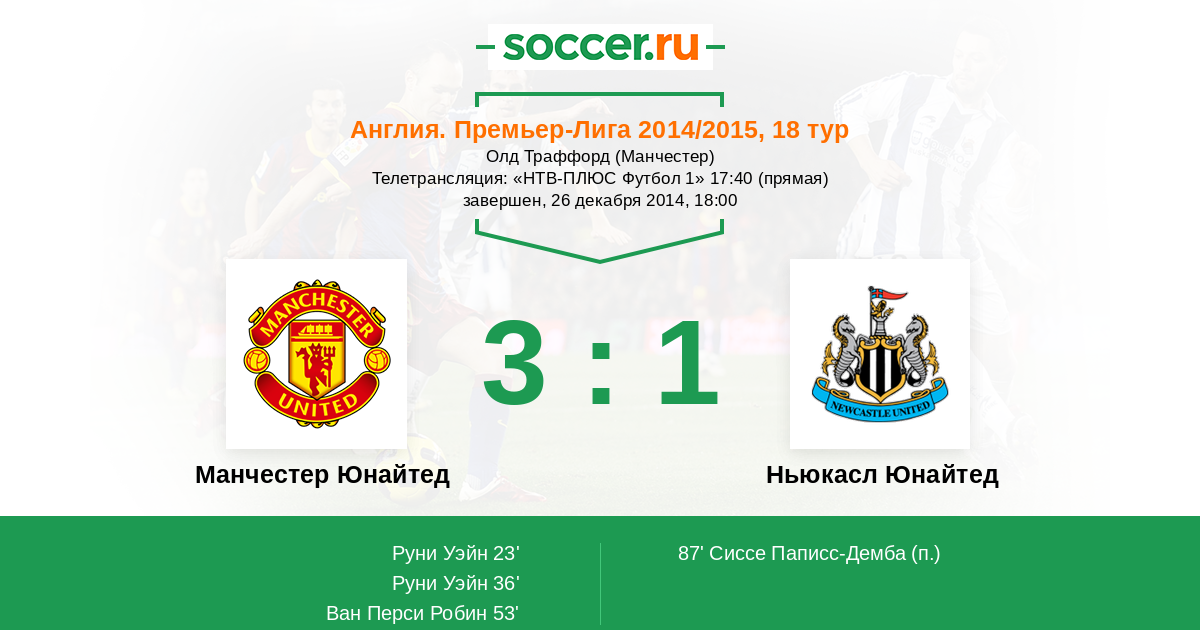 53' (3:0) Ван Перси Робин (20) (Руни Уэйн (10))