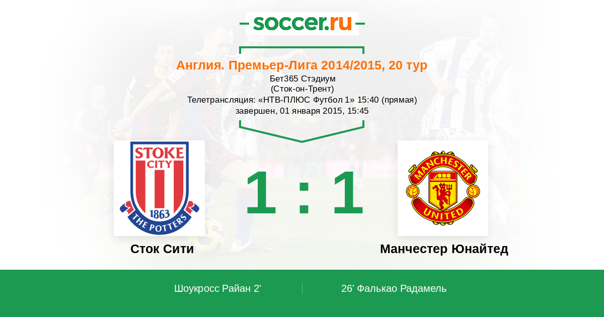 26' (1:1) Фалькао Радамель (9) (Каррик Майкл (16))