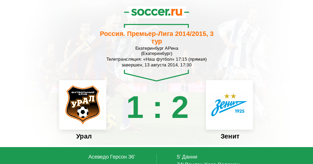 74' (1:2) Рондон Хосе Саломон (23) (Халк (7))