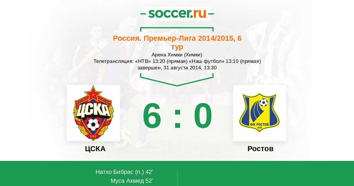 Телетрансляция: «НТВ» 13:20 (прямая) «Наш футбол» 13:10 (прямая)