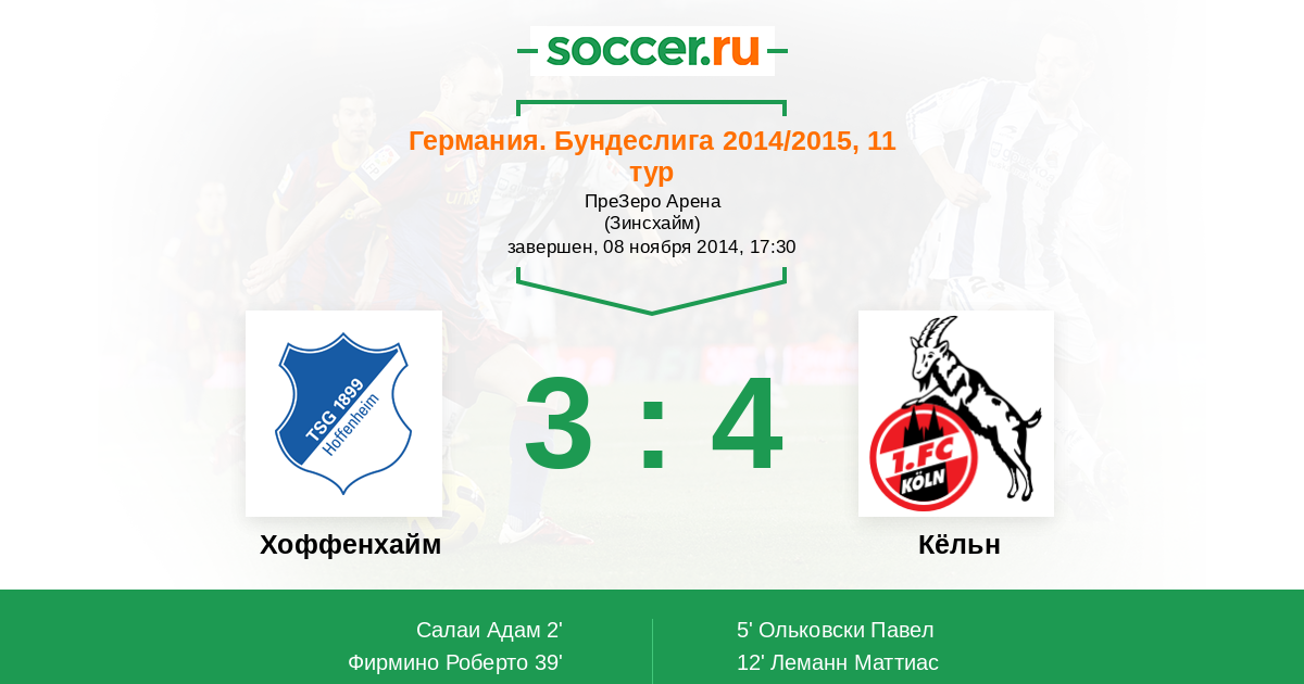 45' (3:3) Фирмино Роберто (10) (Фолланд Кевин (31))