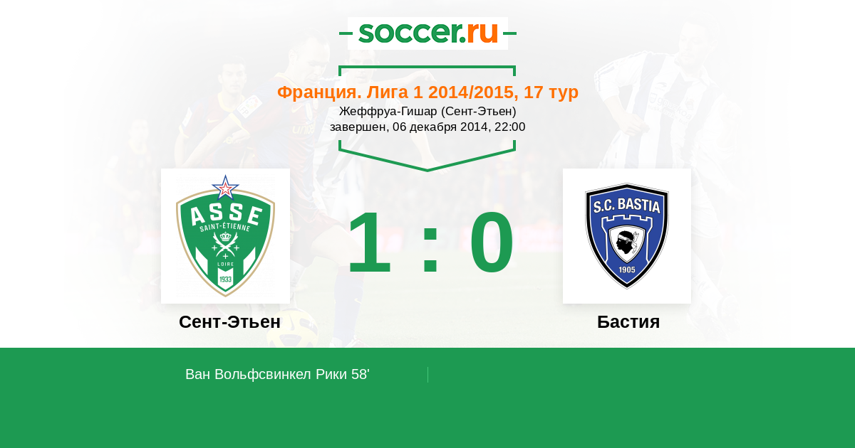 58' (1:0) Ван Вольфсвинкел Рики (13) (Лемуан Фабьен (18))