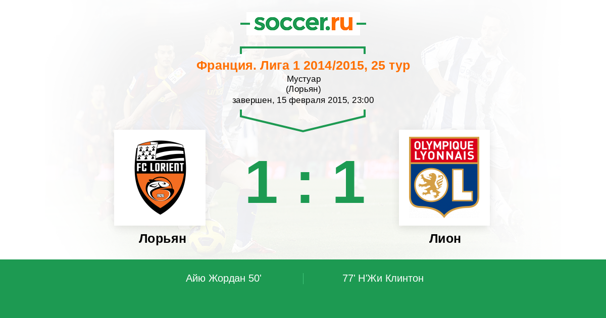 50' (1:0) Айю Жордан (9) (Жанно Бенжамен (22))