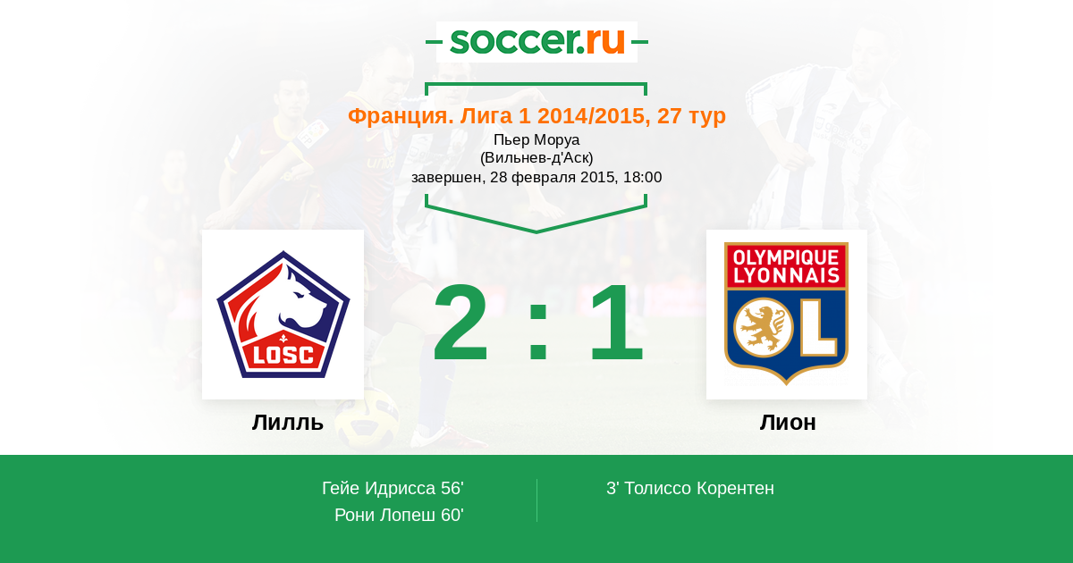 60' (2:1) Рони Лопеш (17) (Коршья Себастьен (2))
