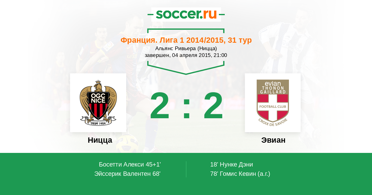 68' (2:1) Эйссерик Валентен (10) (Босетти Алекси (23))