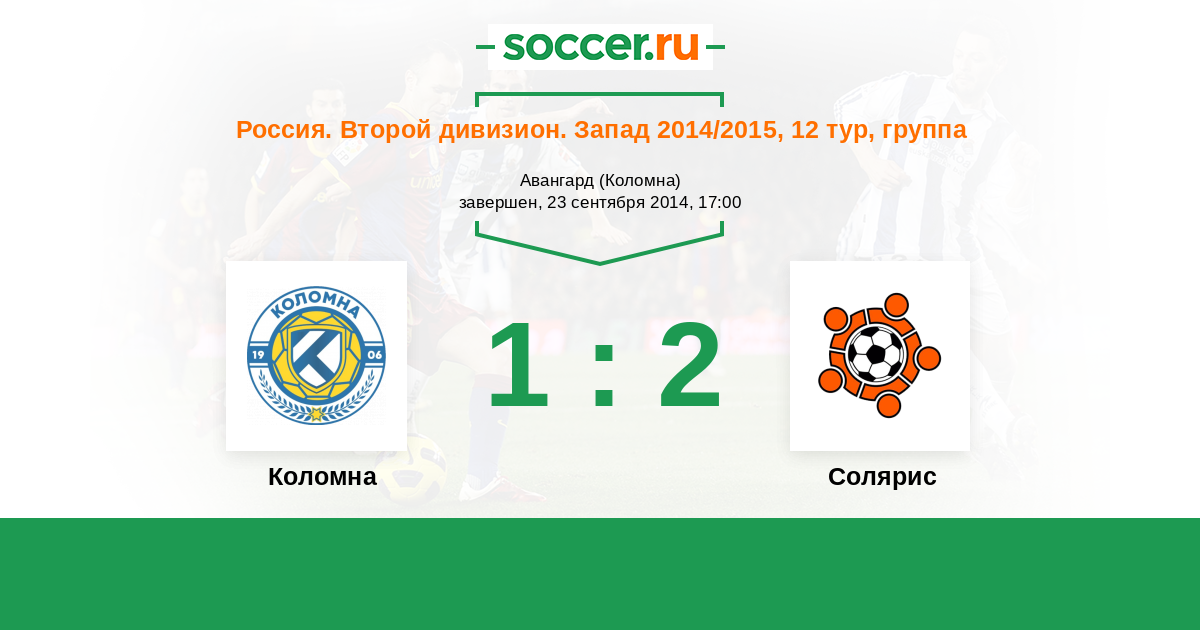 Россия. Второй дивизион. Запад 2014/2015, 12 тур