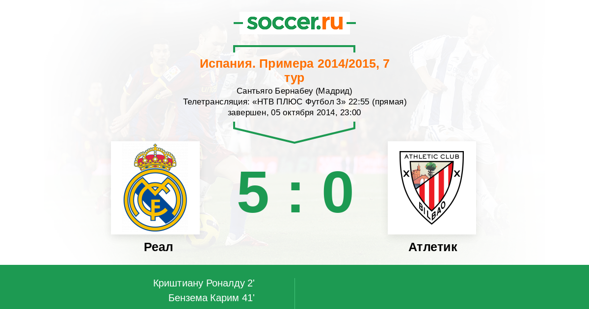 41' (2:0) Бензема Карим (9) (Модрич Лука (19))
