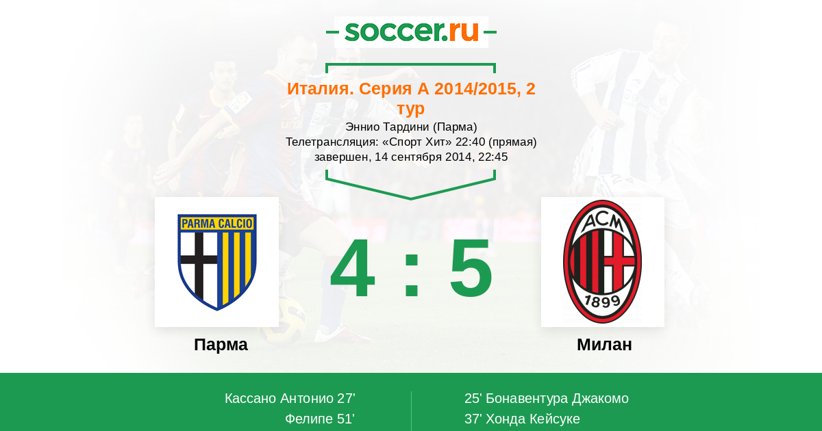37' (1:2) Хонда Кейсуке (10) (Абате Иньяцио (20))