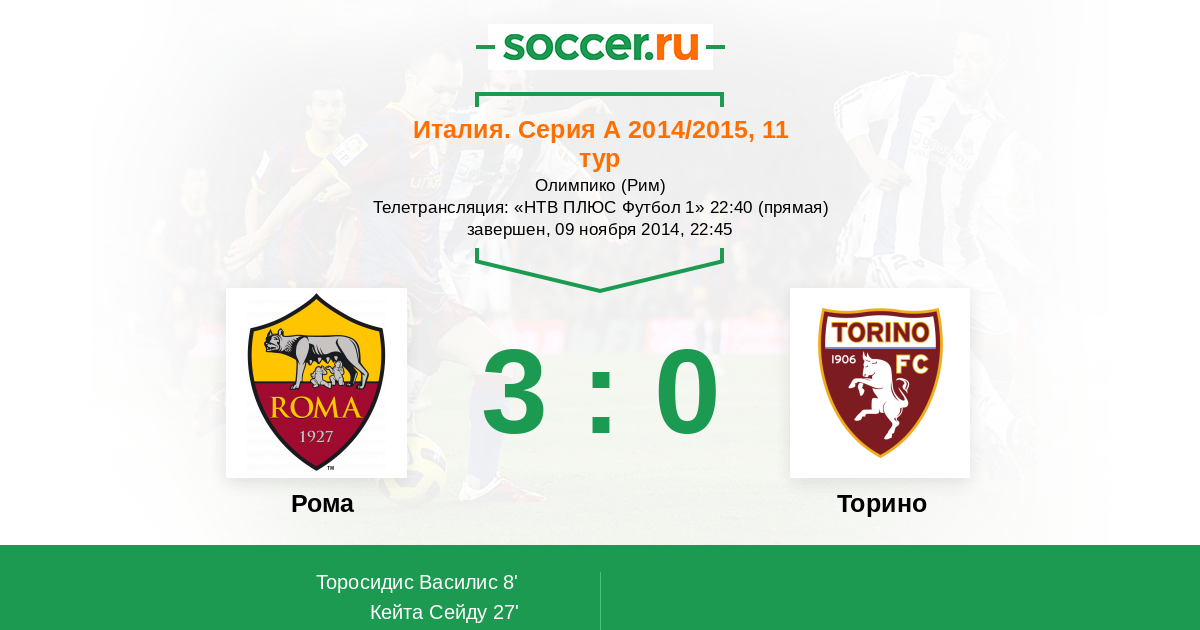 8' (1:0) Торосидис Василис (35) (Тотти Франческо (10))