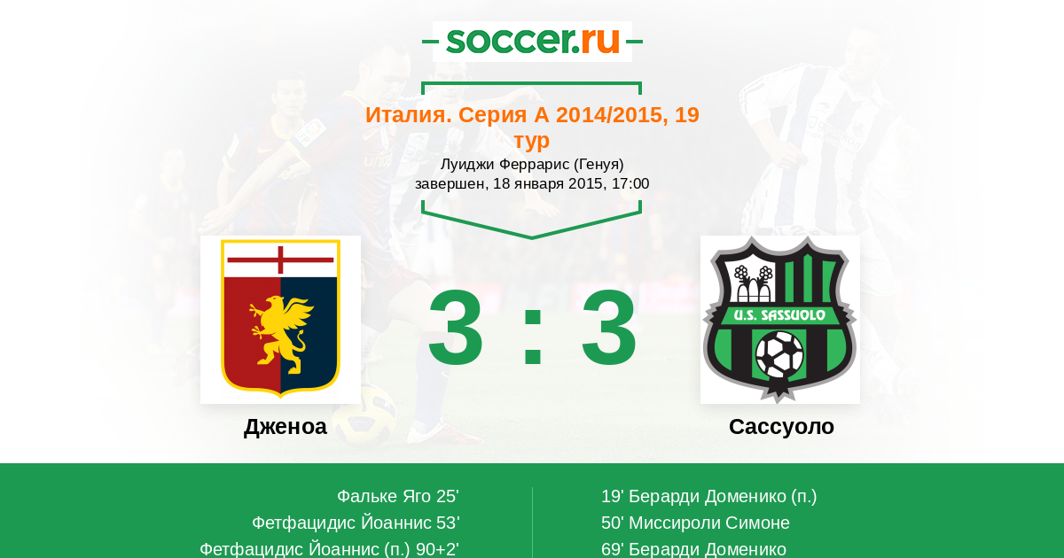 69' (2:3) Берарди Доменико (25) (Дзадза Симоне (10))