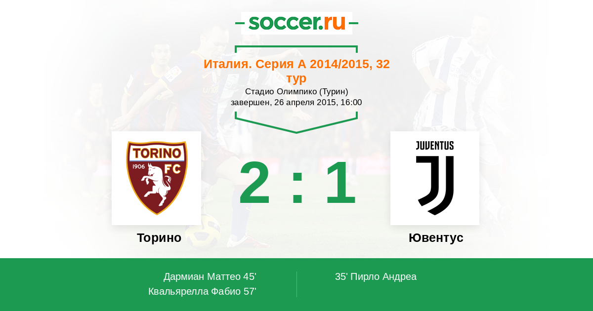57' (2:1) Квальярелла Фабио (27) (Дармиан Маттео (36))