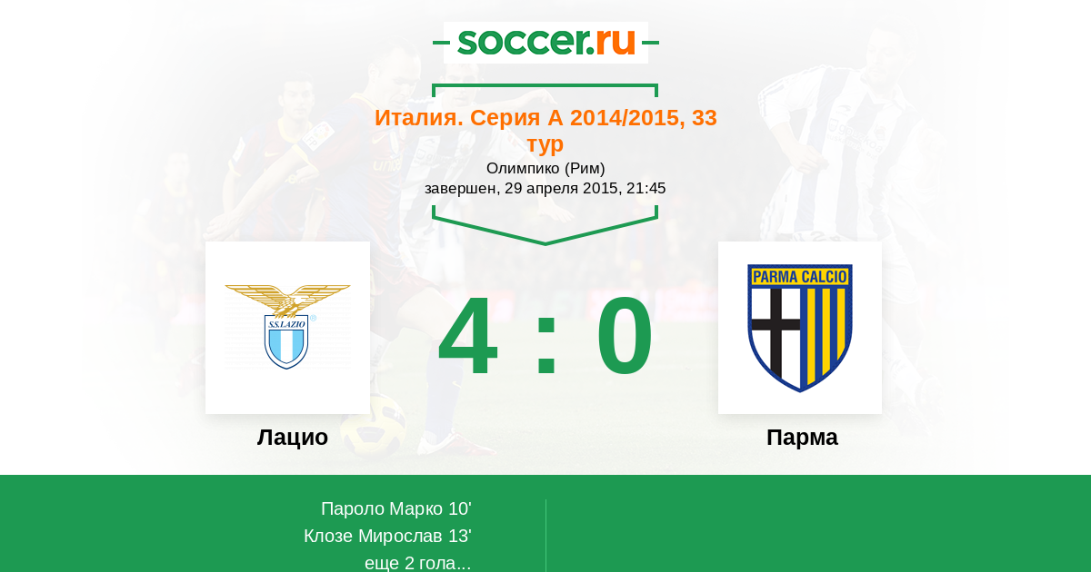 10' (1:0) Пароло Марко (16) (Лулич Сенад (19))