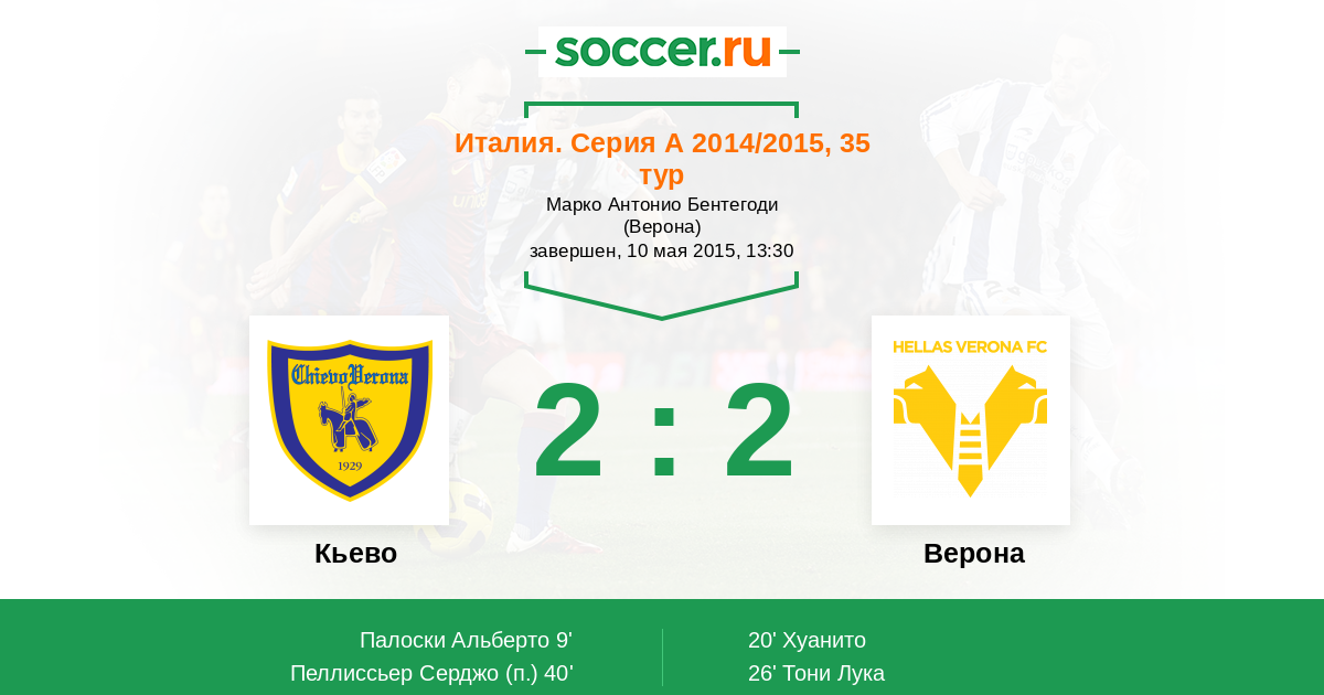 9' (1:0) Палоски Альберто (43) (Пеллиссьер Серджо (31))