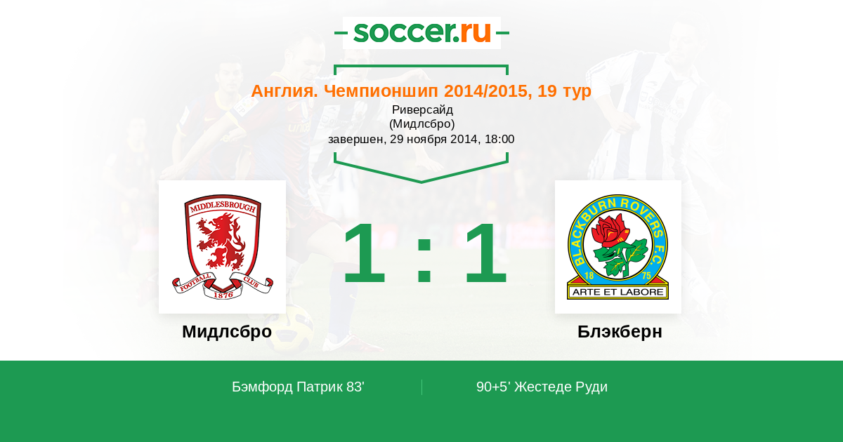 90+5' (1:1) Жестеде Руди (39) (Даффи Шейн (22))