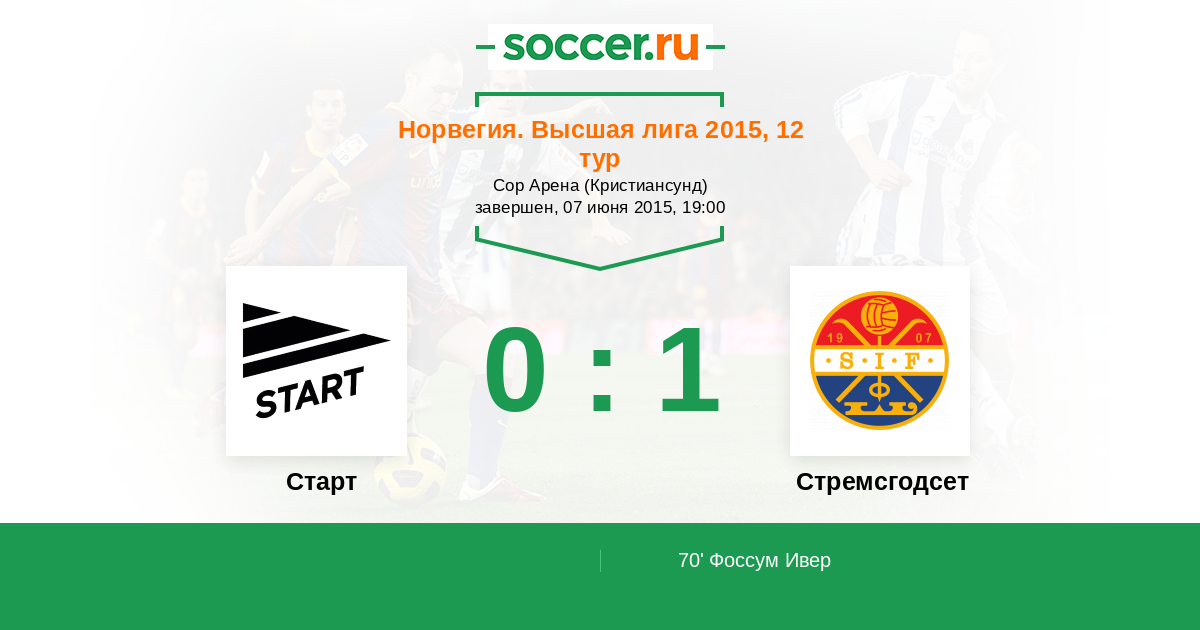 70' (0:1) Фоссум Ивер (14) (Сторфлор Эёвинд (9))