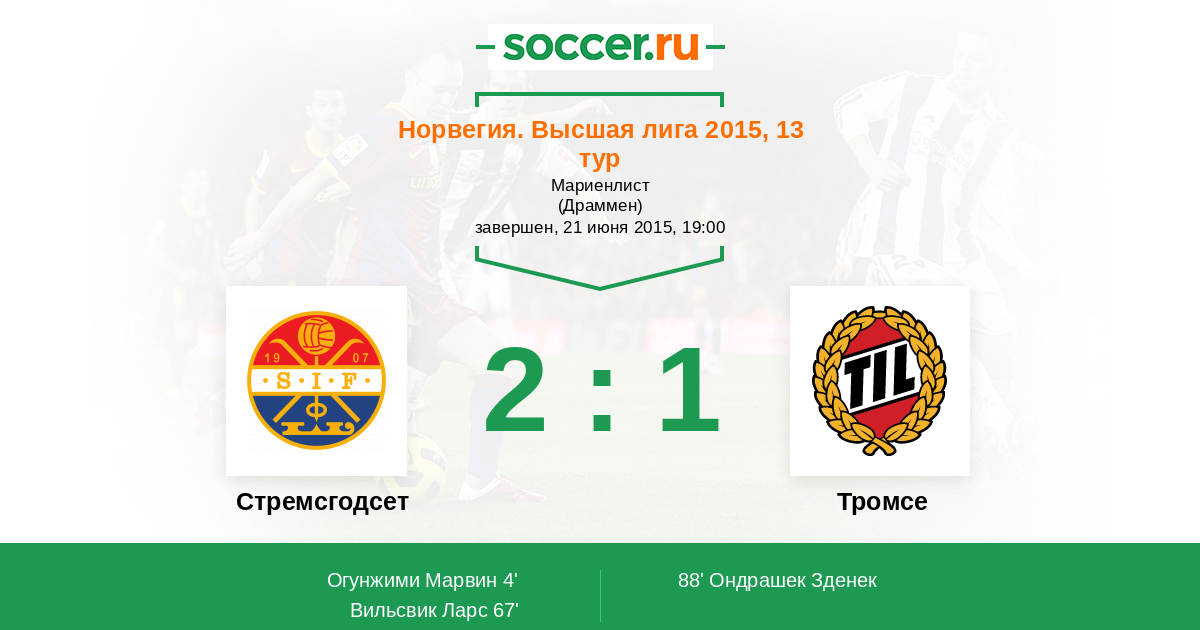 67' (2:0) Вильсвик Ларс (26) (Фоссум Ивер (14))