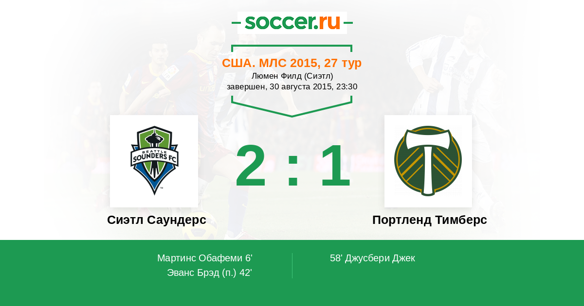 42' (2:0) Эванс Брэд (3)