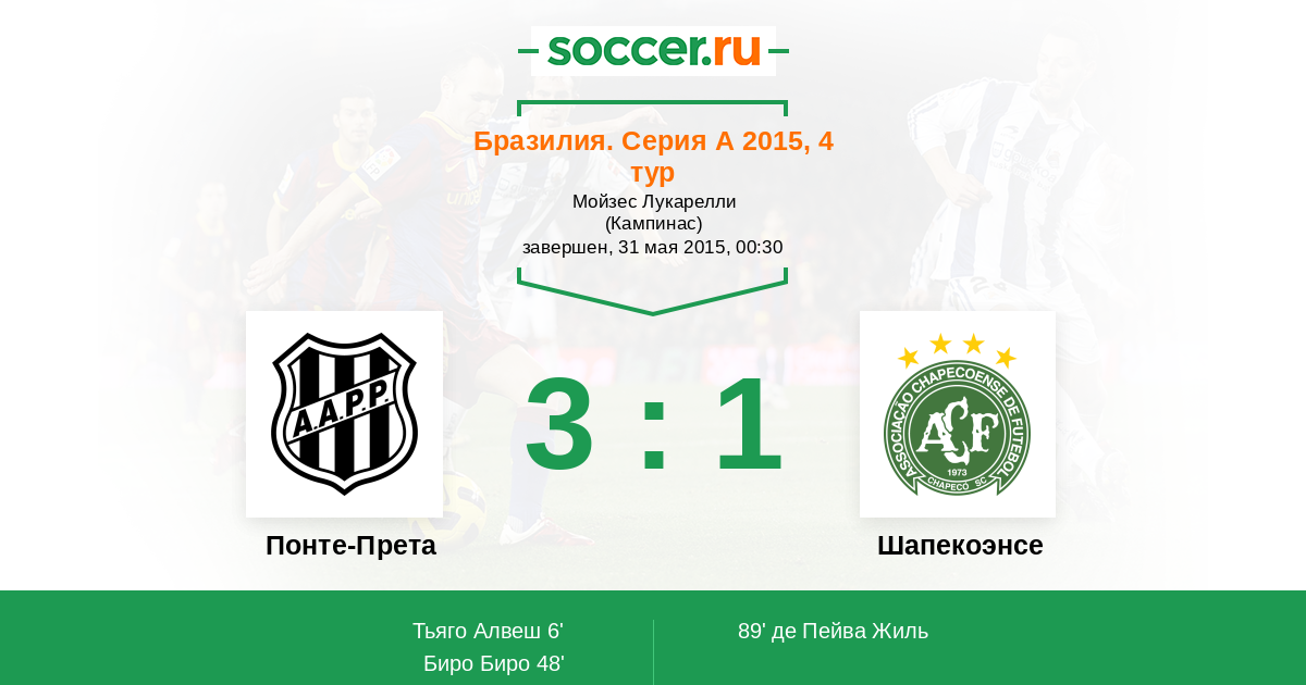 Гол90+3' (3:1) Ренато Каха (10) (Умберлито Боржес (19))