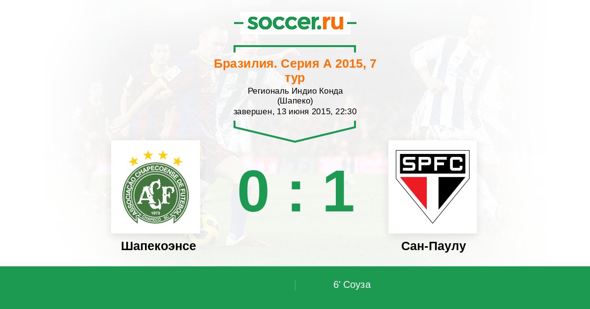 6' (0:1) Соуза (5) (Фабиано Луис (9))