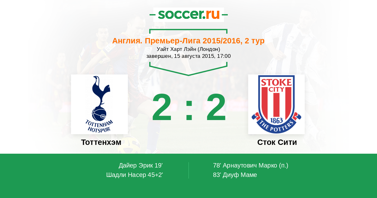83' (2:2) Диуф Маме (18) (Айрленд Стивен (7))