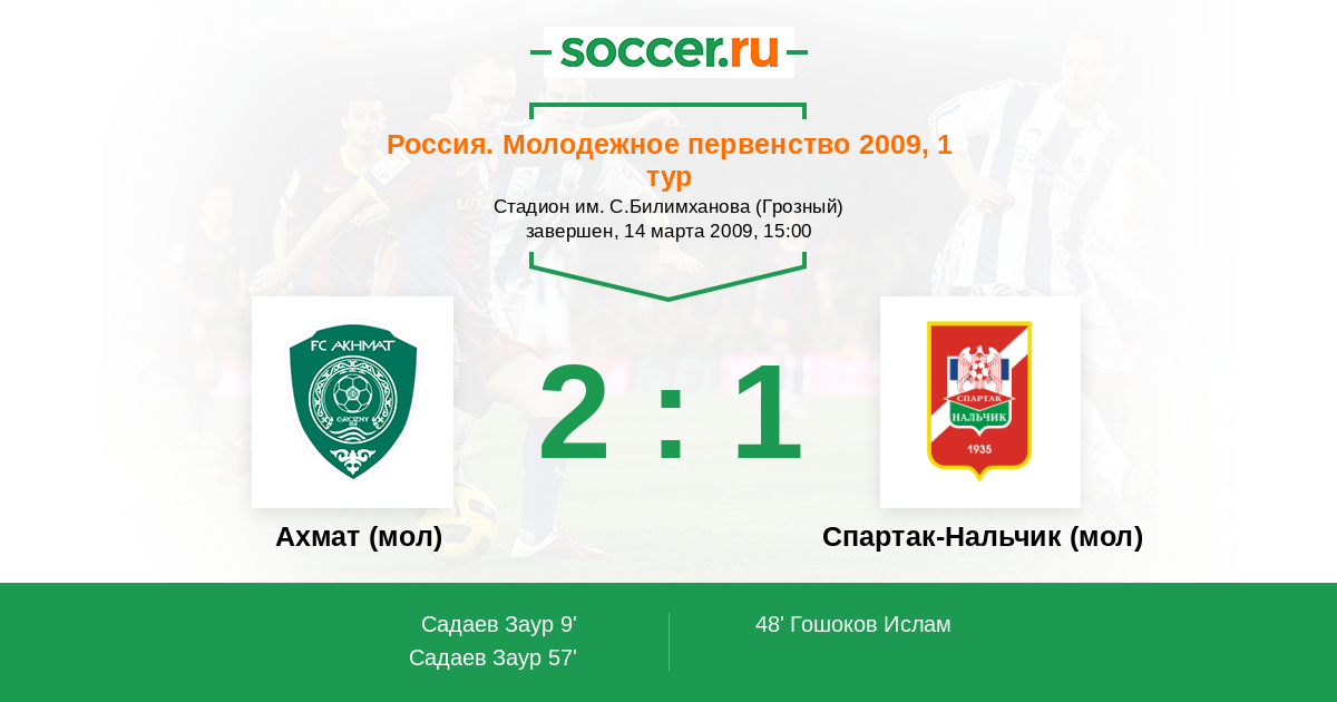 Матчи Россия. Молодежное первенство 2009