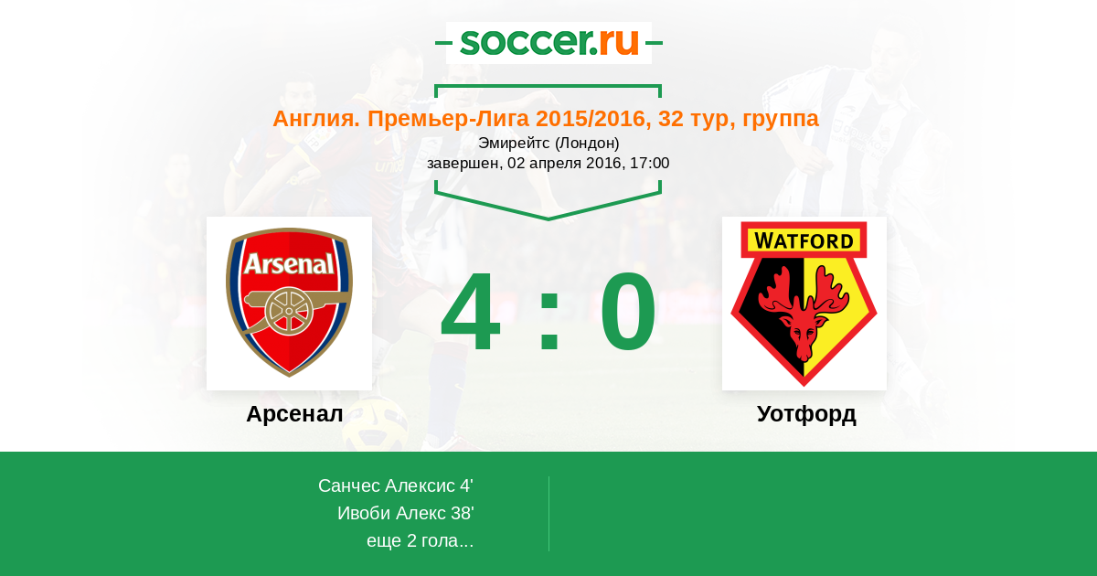 38' (2:0) Ивоби Алекс (45) (Санчес Алексис (17))