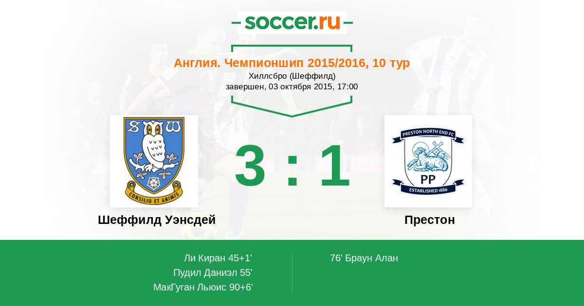 90+6' (3:1) МакГуган Льюис (10) (Лопес Алехандро (21))