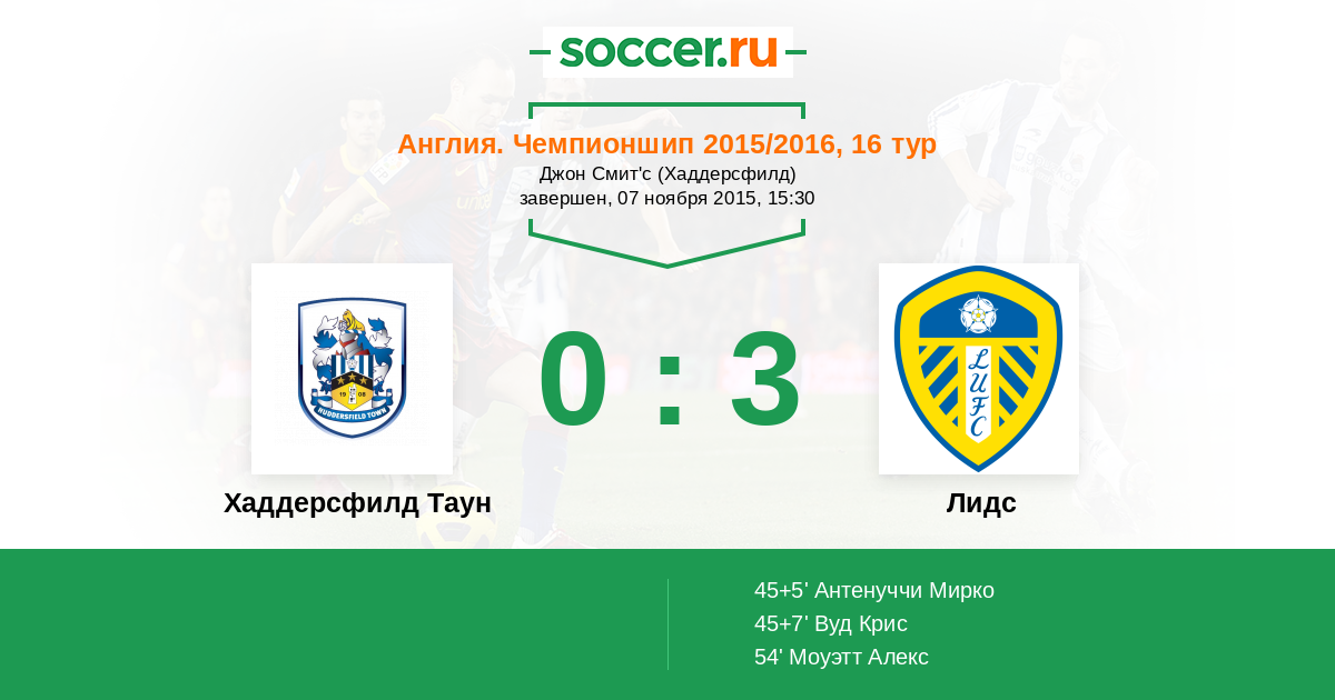 54' (0:3) Моуэтт Алекс (10) (Вуттон Скотт (4))