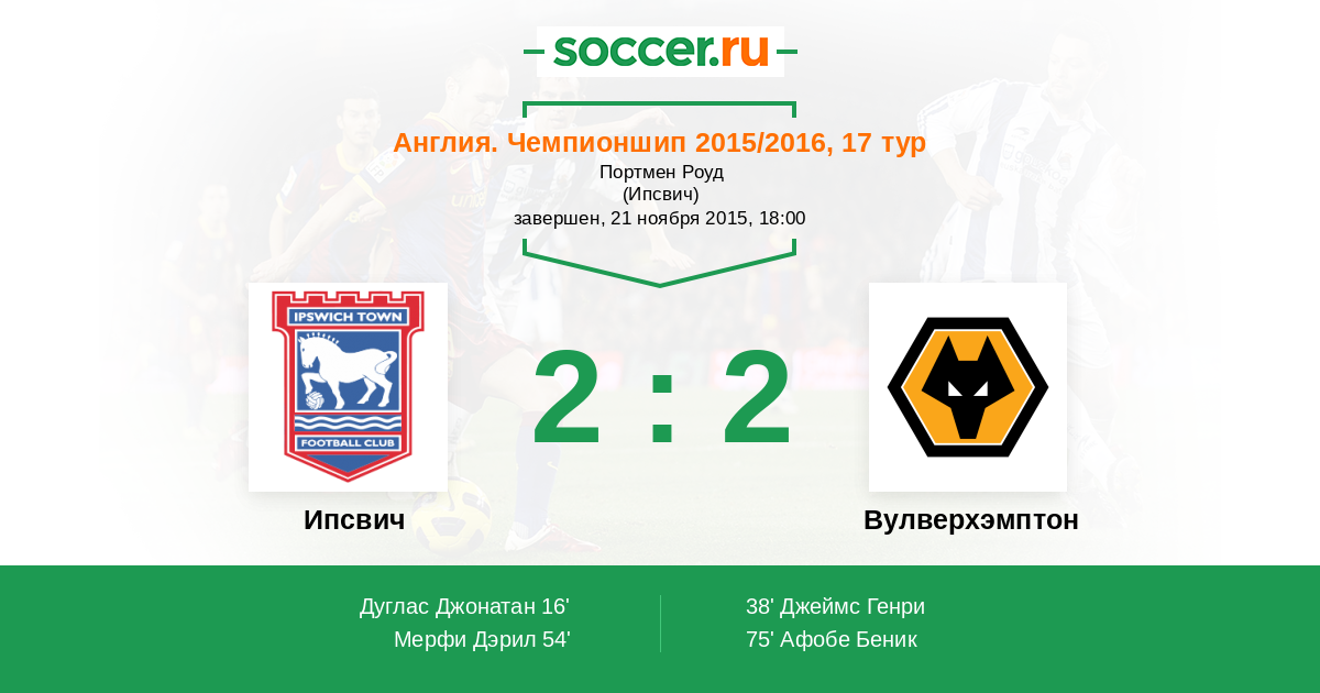 38' (1:1) Джеймс Генри (7) (Уильямсон Майкл (5))