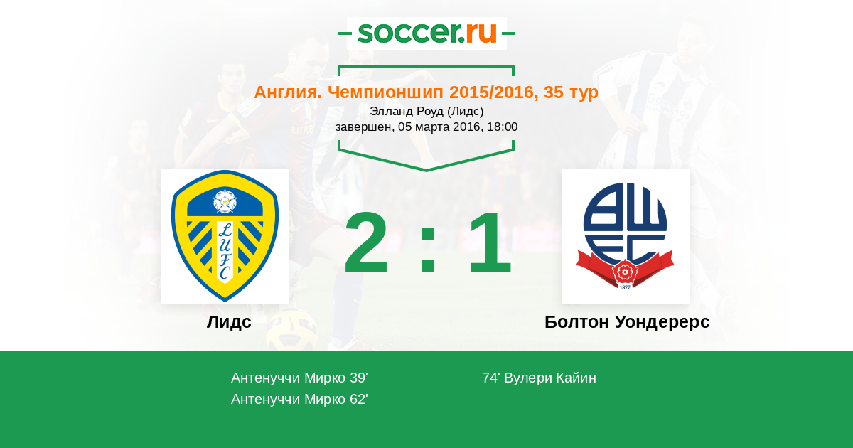 39' (1:0) Антенуччи Мирко (7) (Купер Лиам (6))