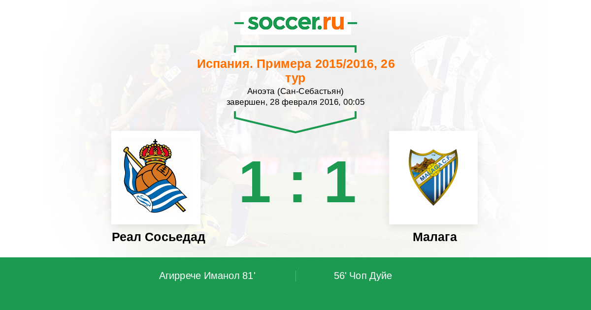 81' (1:1) Агиррече Иманол (9) (Прието Хаби (10))