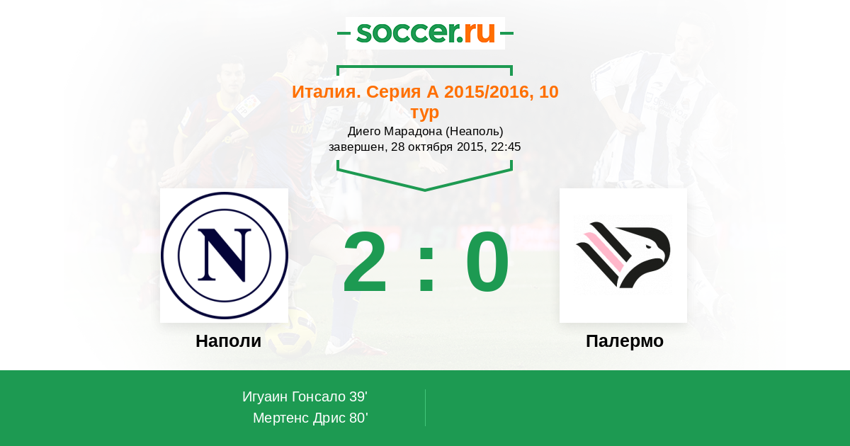 39' (1:0) Игуаин Гонсало (9) (Гамшик Марек (17))