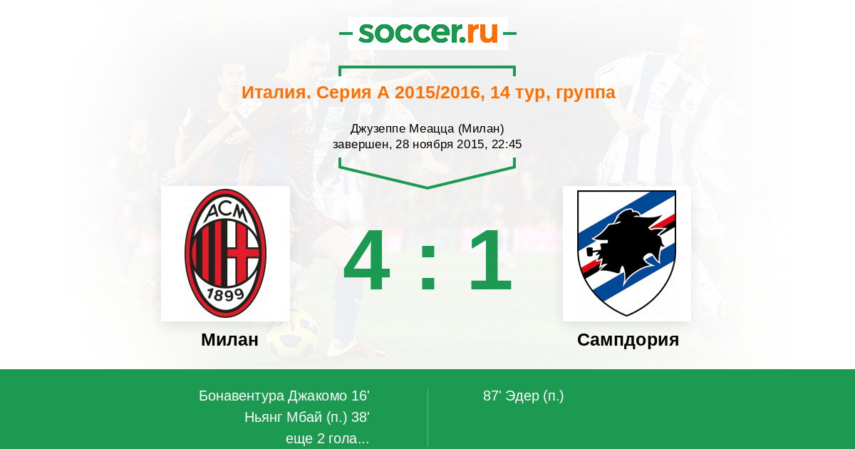 16' (1:0) Бонавентура Джакомо (28) (Ньянг Мбай (19))