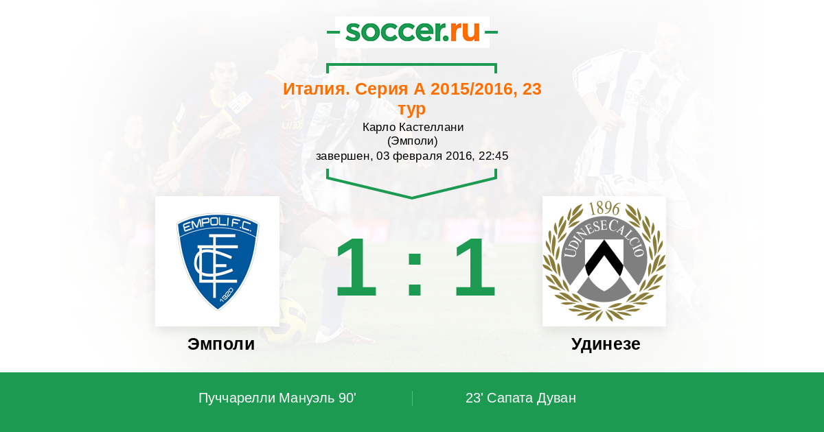 90' (1:1) Пуччарелли Мануэль (20) (Маккароне Массимо (7))