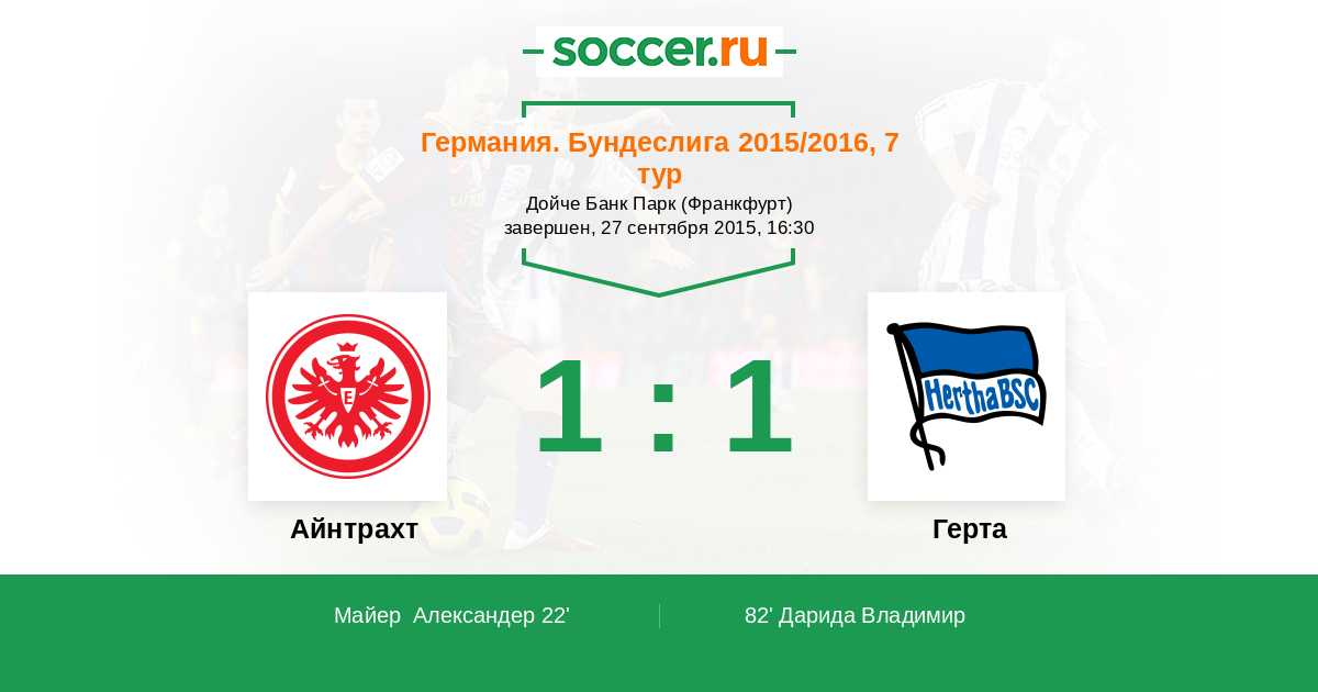22' (1:0) Майер Александер (14) (Русс Марко (4))