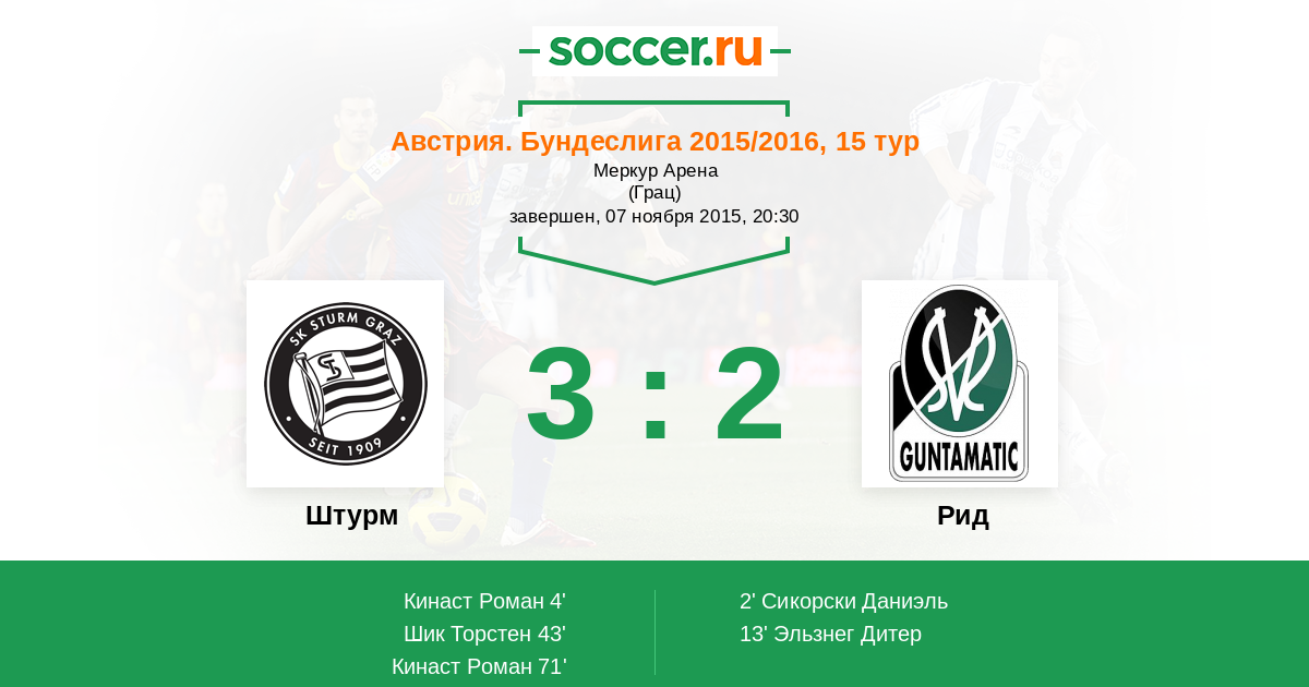 13' (1:2) Эльзнег Дитер (20) (Траунер Гернот (8))