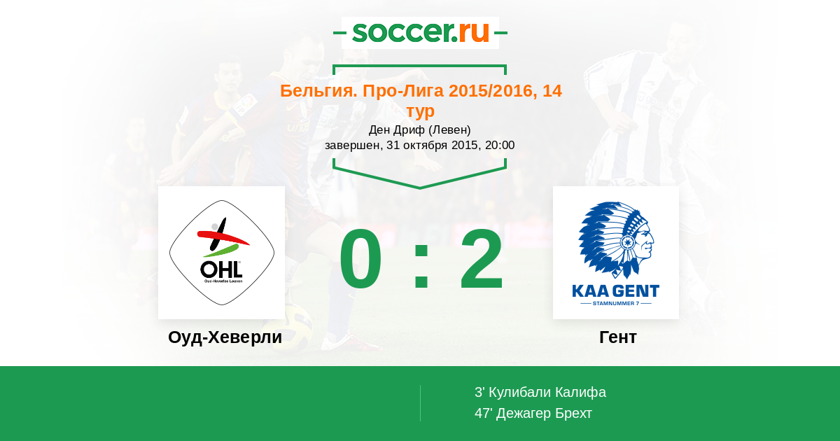 47' (0:2) Дежагер Брехт (19) (Кулибали Калифа (7))