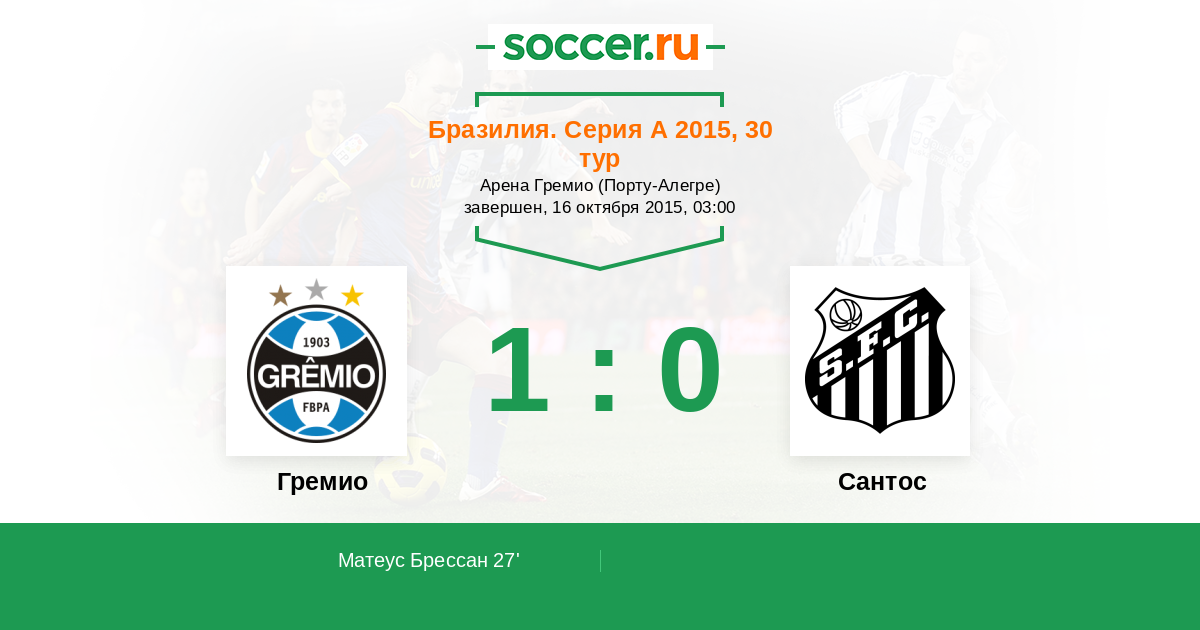 27' (1:0) Матеус Брессан (4) (дос Сантос Дуглас (10))