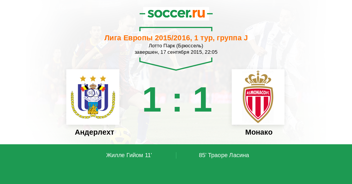 11' (1:0) Жилле Гийом (30) (Прат Деннис (10))