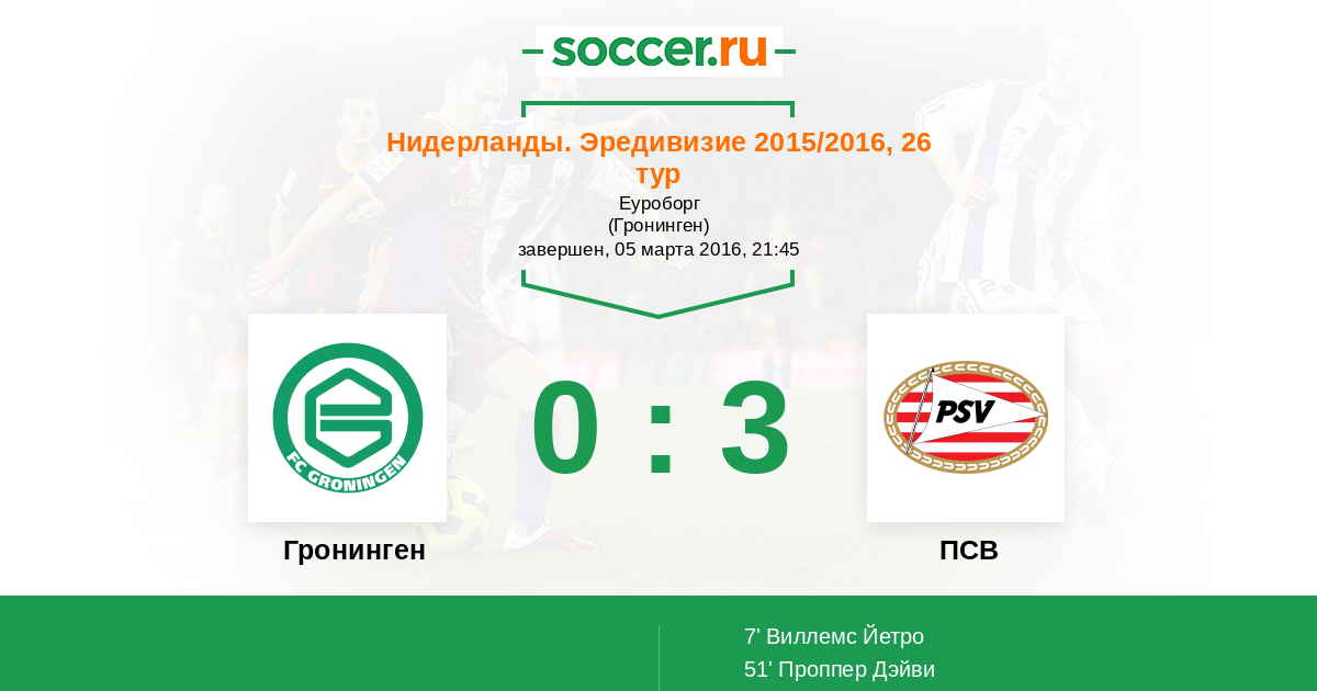 7' (0:1) Виллемс Йетро (15) (ван Гинкел Марко (28))