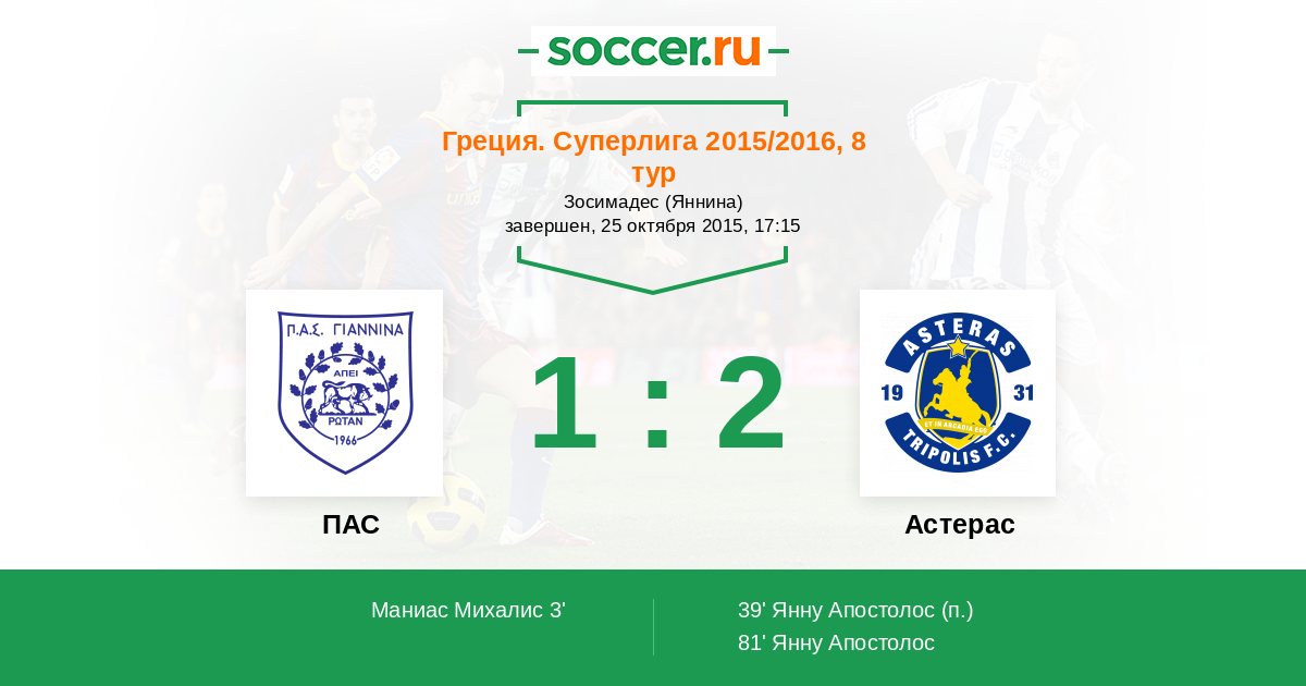 81' (1:2) Янну Апостолос (99) (Лансароте Бруно Мануэль (10))