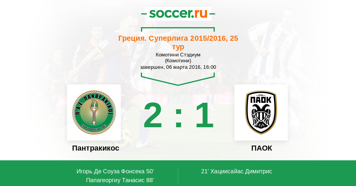 21' (0:1) Хациисайас Димитрис (5) (Пелкас Димитриос (77))