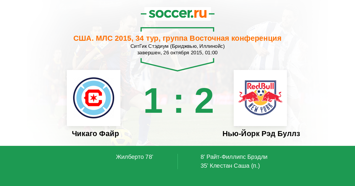 8' (0:1) Райт-Филлипс Брэдли (99) (Сэл Зиззо (15))