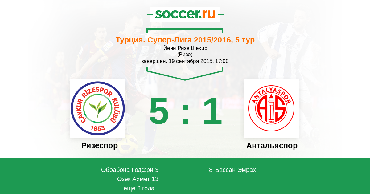 13' (2:1) Озек Ахмет (78) (Альбайрак Эрен (11))