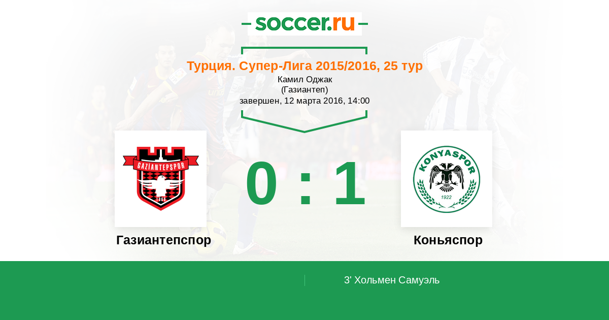 3' (0:1) Хольмен Самуэль (6)