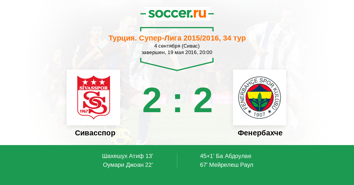 45+1' (2:1) Ба Абдоулае (53) (Топал Мехмет (5))