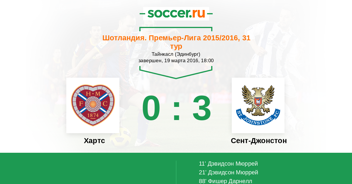 11' (0:1) Дэвидсон Мюррей (8) (Крэйг Лиам (26))