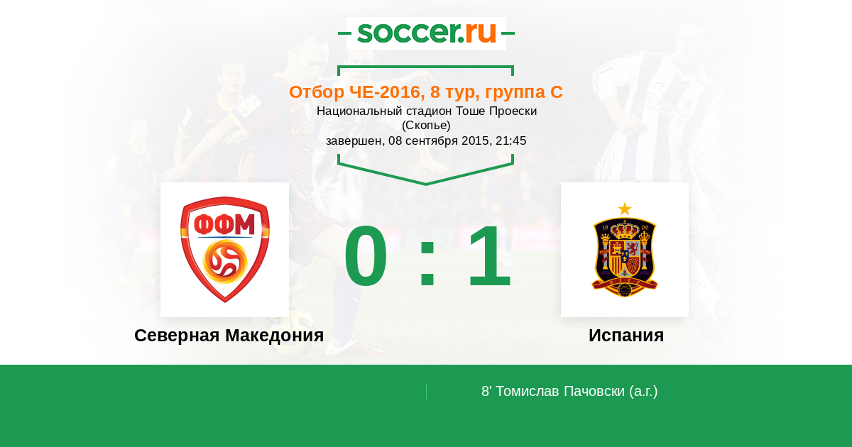 8' (0:1) Автогол Томислав Пачовски (1)