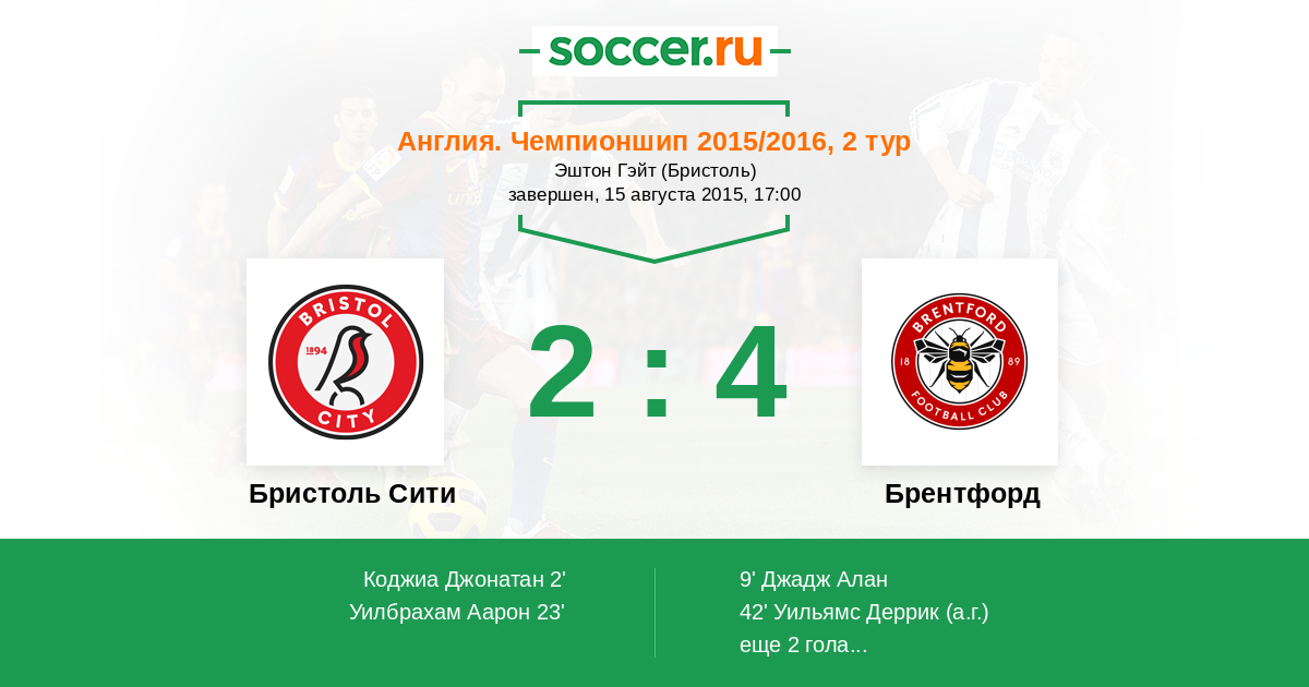 42' (2:2) Автогол Уильямс Деррик (3)